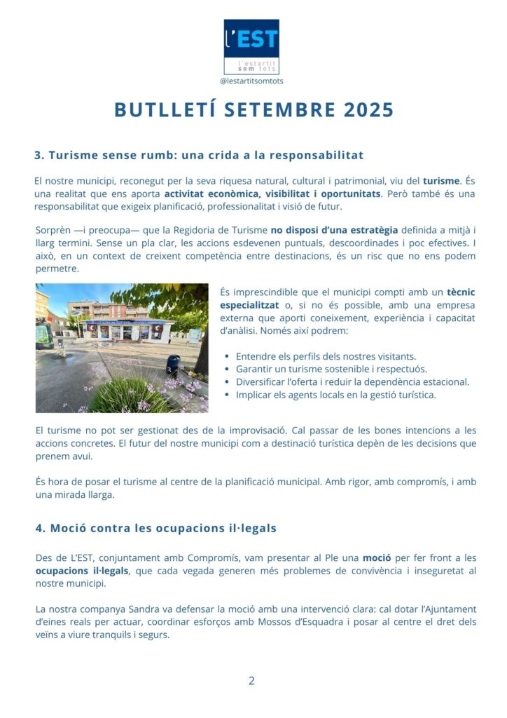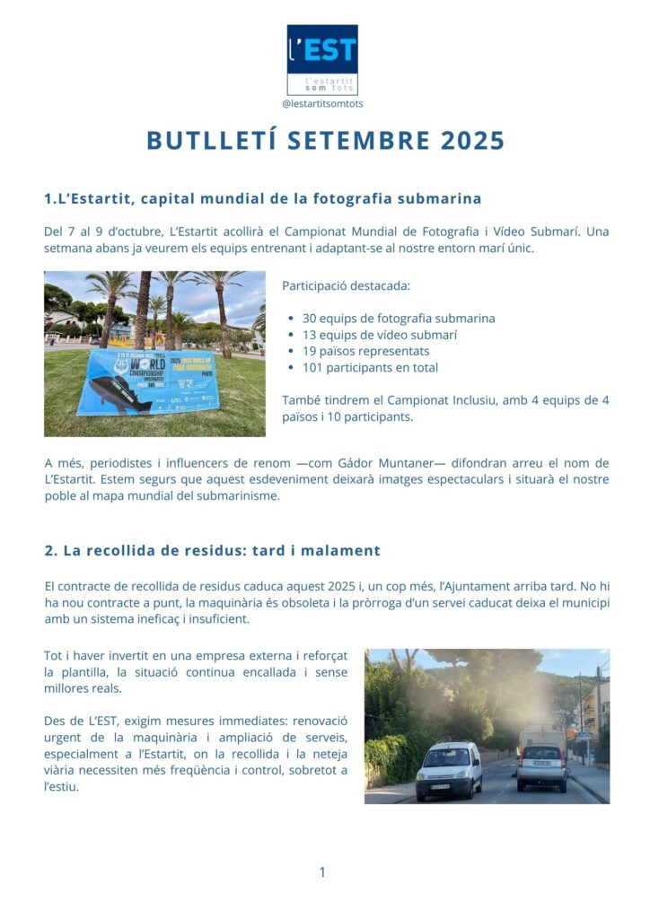 Des de L’EST, exigim mesures immediates: renovació urgent de la maquinària i ampliació de serveis, especialment a l’Estartit, on la recollida i la neteja viària necessiten més freqüència i control, sobretot a l’estiu.